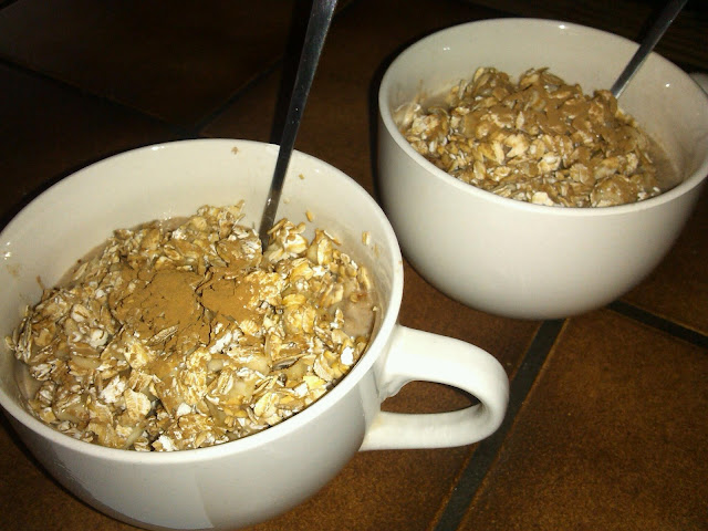 Owsianka na mleku z miodem. Z dodatkiem, a może inaczej: przewagą chałwy + prażone siemię :-)